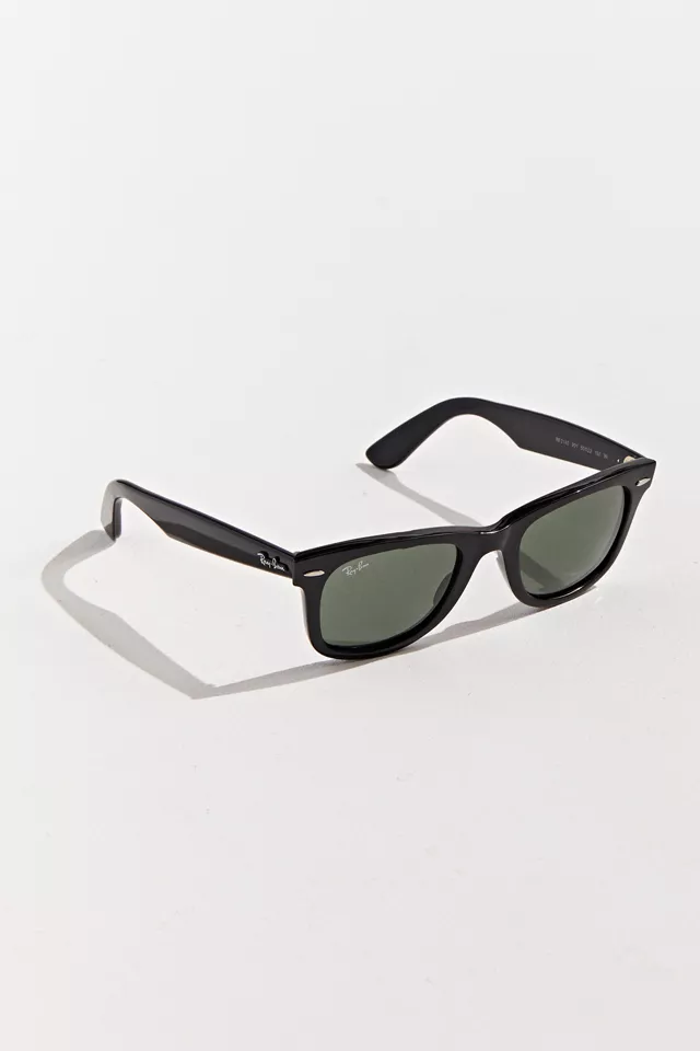 Classic sunglasses by Ray-Ban in the brand’s signature Wayfarer silhouette. Features a plastic frame with molded nose bridge and finished with tinted UV-blocking lenses.